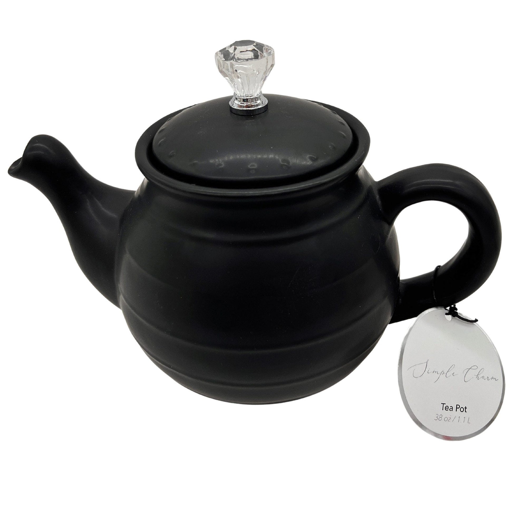 introducing our exquisite 38oz matte black teapot. elevate your tea-drinking experience with this sleek and stylish teapot that effortlessly combines modern aesthetics with timeless design. crafted with precision and care the matte black teapot boasts a generous 38oz capacity. the matte black finish adds a touch of elegance to any table setting. the ergonomic handle provides a comfortable grip while the spout ensures a smooth and controlled pour. comes bulk with a hang tag. 38oz matte black teapot