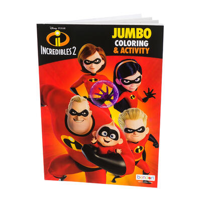 incredibles 2 jumbo coloring and activity book is perfect for children to pratice their coloring skills and complete fun activities like word search secret identity vanishing violet and more.