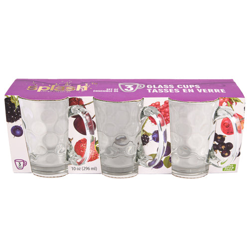 splash glass mug w handle 10-oz 3-pk -- 16 per case